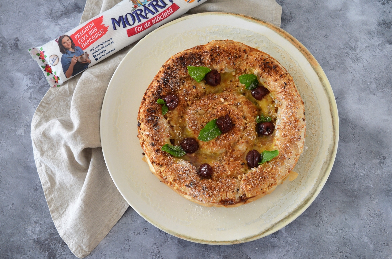 PLĂCINTĂ CU VIȘINE ȘI CREMĂ DE VANILIE cu Foi pentru plăcintă Morărița